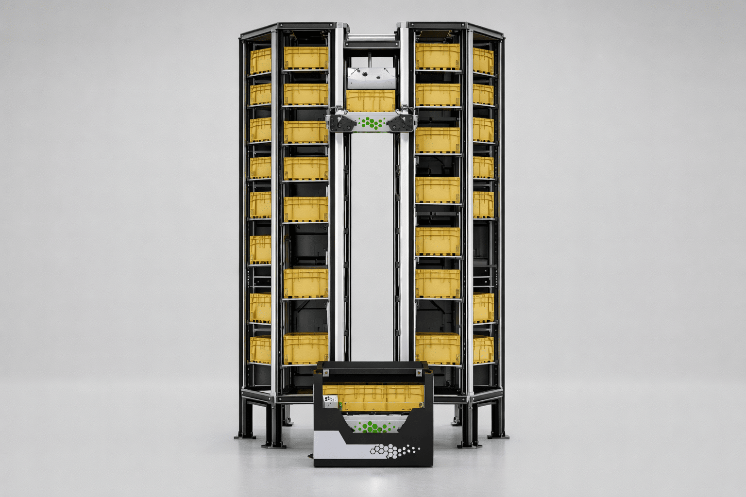 Our system is built to help integrators standardize, scale, and deliver predictable performance across customer environments. Modular towers for maximum storage, no client specific engineering is needed. Autonomous hexxabots for high throughput. Direct vertical access without heavy infrastructure.